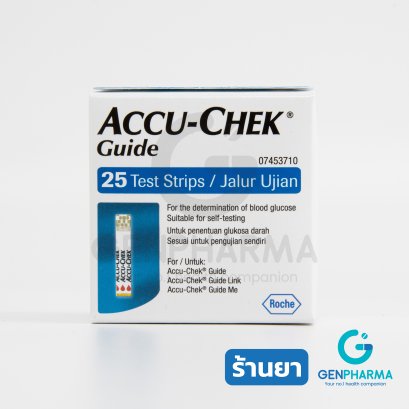 ACCU-CHEK GUIDE 25ชิ้น แผ่นตรวจ ใช้สำหรับการตรวจวัดปริมาณน้ำตาลในเลือด เหมาะสำหรับการใช้ตรวจด้วยตนเอง